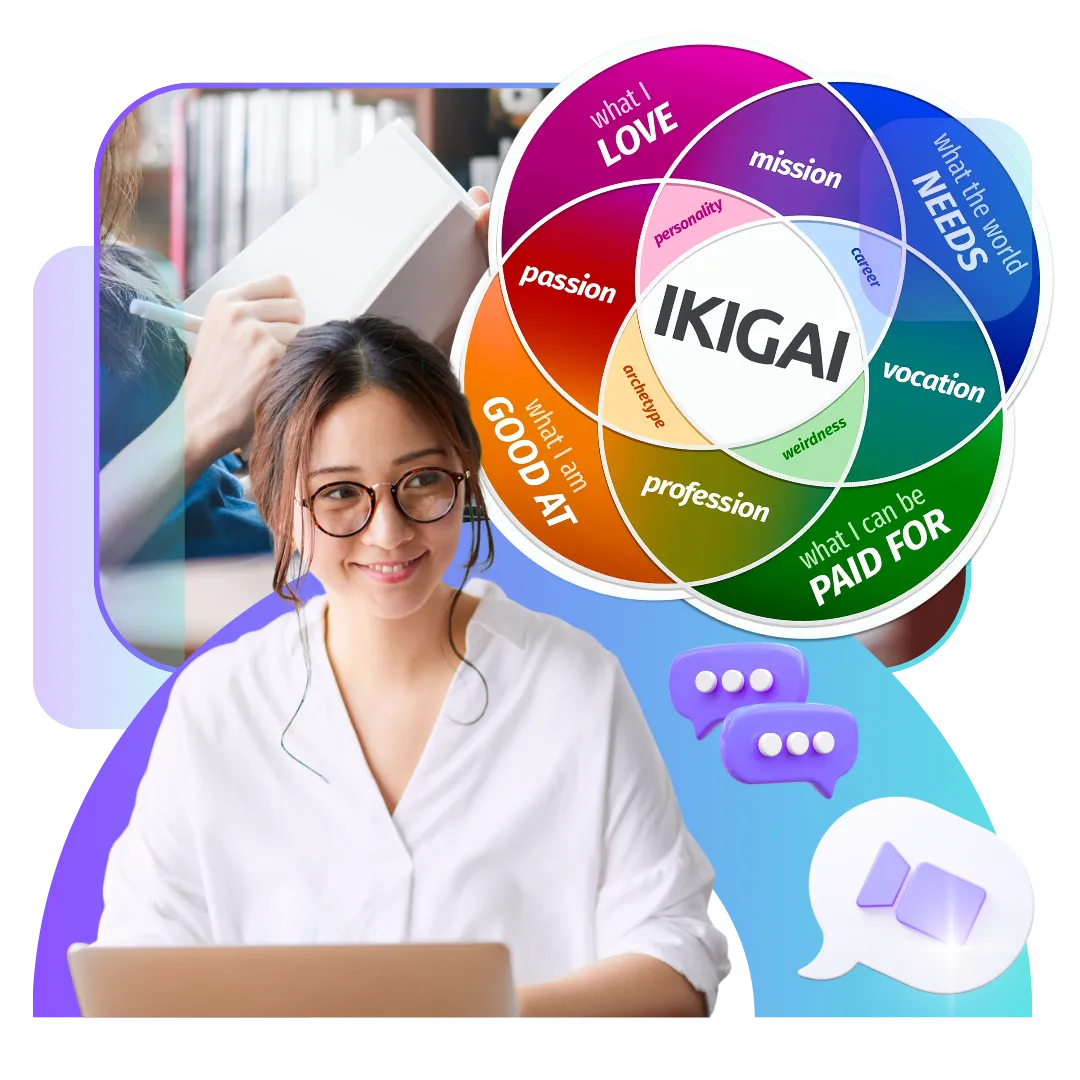 ✔ Online learning modules on Ikigai (purpose-driven living & working).