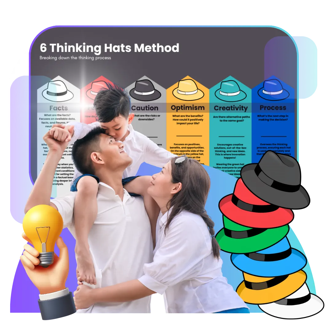 ✔ Thinking Hats Framework — adapt to decisions, sales, leadership & family talks.