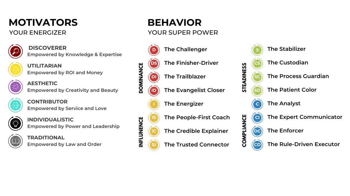 Your behavior (DISC) tells the world how you act. Your motivators reveal why you care. When we put both together, a beautiful picture forms—your personal DNA of communication and drive. This awareness not only improves teamwork and leadership but also helps you build more meaningful relationships where you feel truly seen and understood.