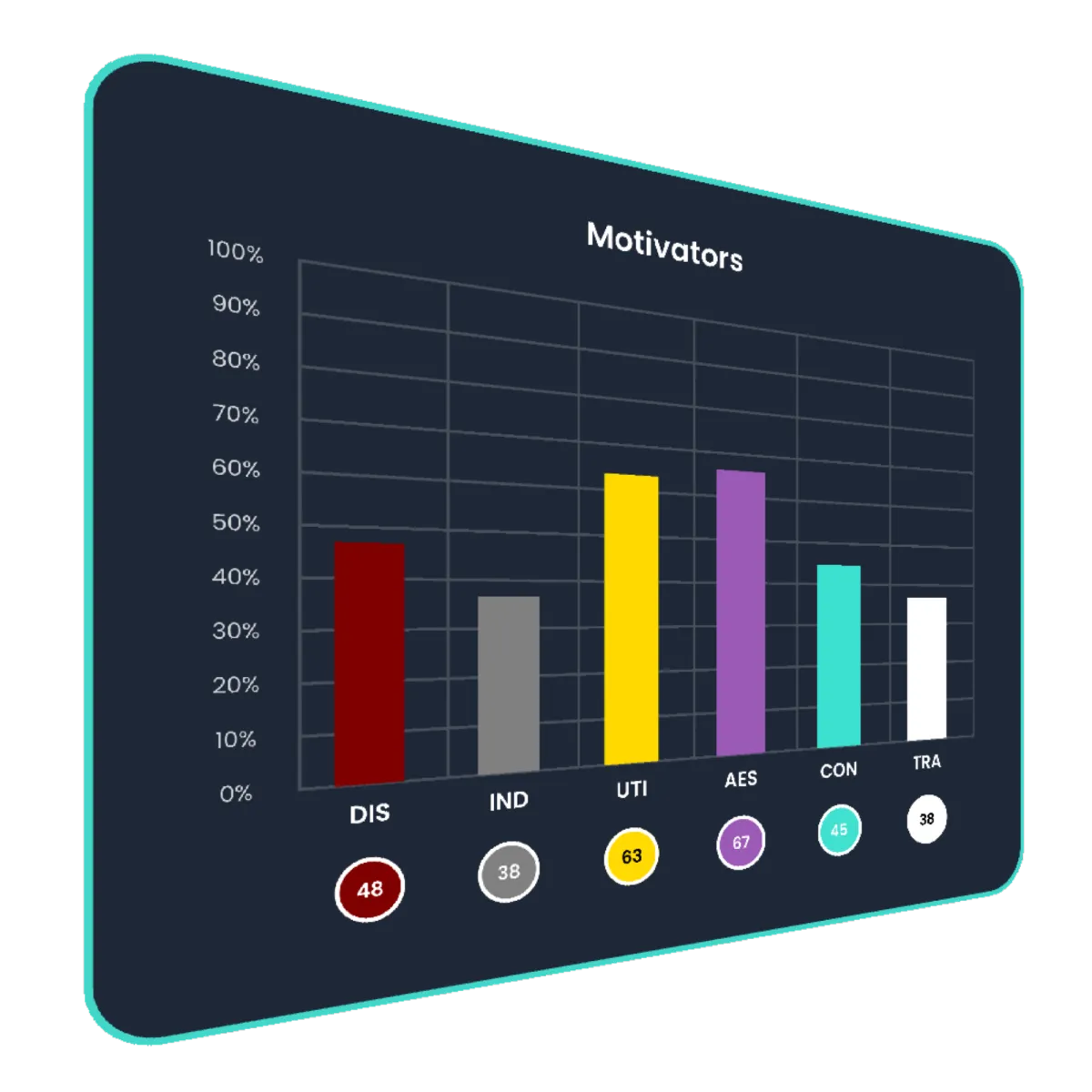 By merging both dimensions, MotivatorDISC delivers deeper insights into: